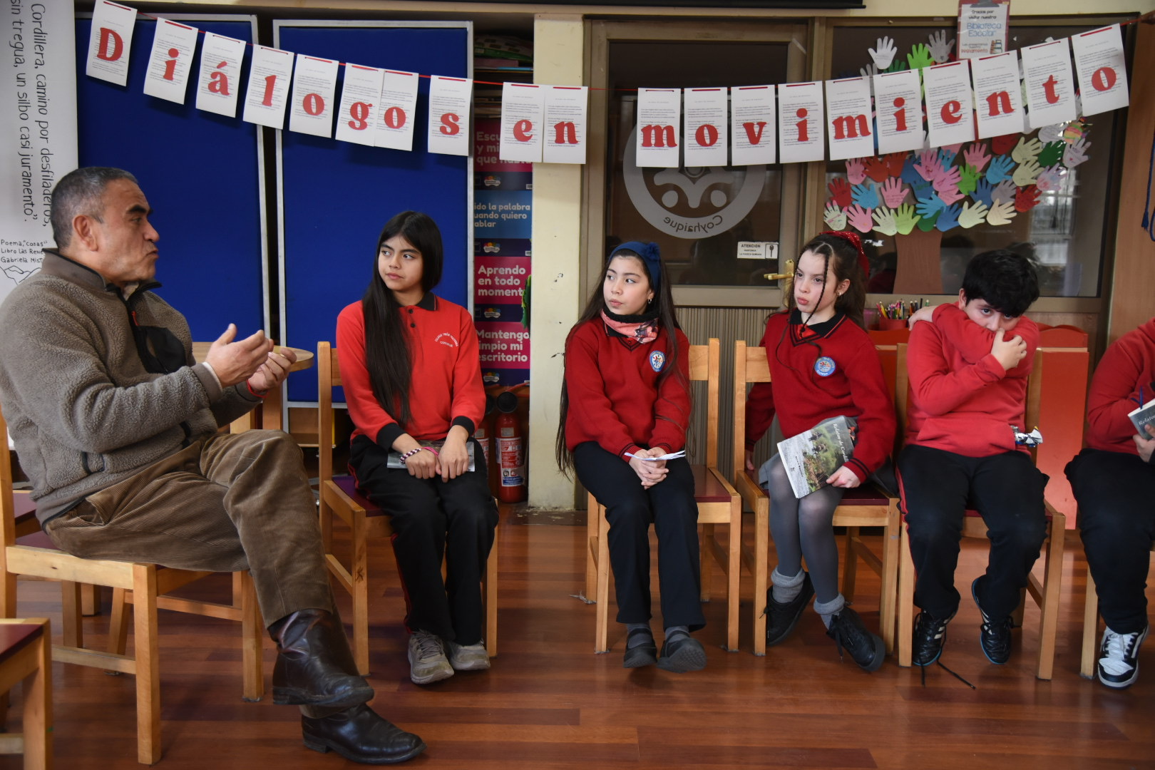 Oscuro Malacara, seudónimo de Francisco Muñoz Serón, comenzó este año su recorrido literario con sus Relatos de Cordillera en el colegio Unión Fraterna de Coyhaique, cuyos estudiantes del Club de Lectura se sorprendieron con las historias llenas de tradiciones e identidad local. Para el escritor, quien ha participado en otras ediciones del programa, cree que es un momento único de enriquecimiento mutuo: “Maravilloso, siempre es bueno juntarse con los pequeños lectores. Los niños que están interesados en la literatura; es reconfortante, además, que lo lean a uno. Es toda una labor y valoro mucho esta iniciativa de estos Diálogos en Movimiento”.