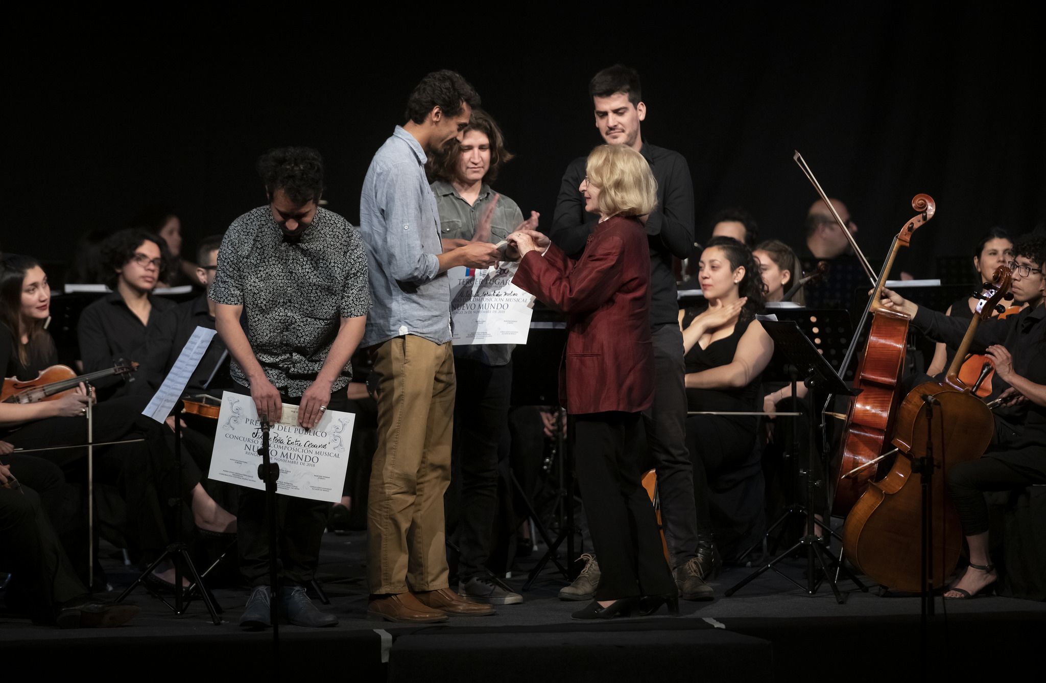 El tercer premio “Fernando García”, que contempla la entrega de 300 mil pesos al ganador, fue recibido por Sebastián Molina, de parte de la directora de la Corporación Cultural Nuevo Mundo, Carmen del Río, en nombre de la presidente María Luisa Gruzmacher. Finalmente, Felipe Peña ganó el Premio del Público, equivalente a la suma de 200 mil pesos.