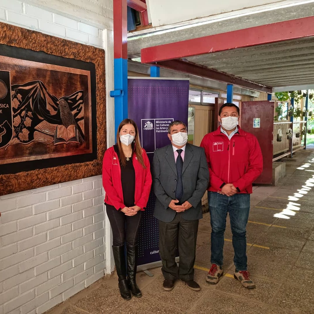 En la Escuela Fronteriza de San Félix, la Seremi de las Culturas, las Artes y el Patrimonio de Atacama, María Cecilia Simunovic Ramírez, junto al reconocido artista visual de la provincia de Huasco, Enzo Páez, inauguraron un mural creado con la técnica de Repujado en Cobre, que el orfebre realizó con símbolos identitarios del valle y del establecimiento educacional, y que fue dispuesto en el ingreso del recinto.