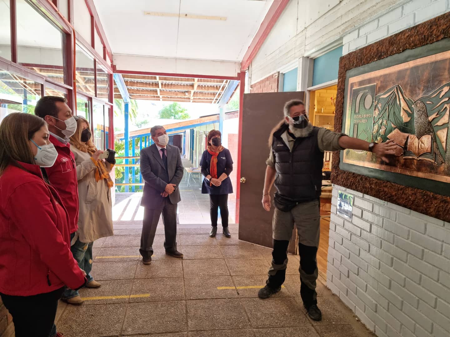 En la Escuela Fronteriza de San Félix, la Seremi de las Culturas, las Artes y el Patrimonio de Atacama, María Cecilia Simunovic Ramírez, junto al reconocido artista visual de la provincia de Huasco, Enzo Páez, inauguraron un mural creado con la técnica de Repujado en Cobre, que el orfebre realizó con símbolos identitarios del valle y del establecimiento educacional, y que fue dispuesto en el ingreso del recinto.
