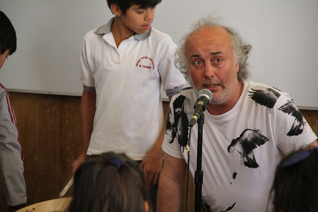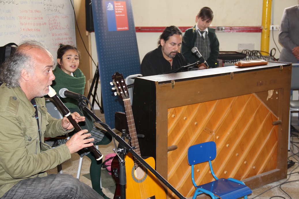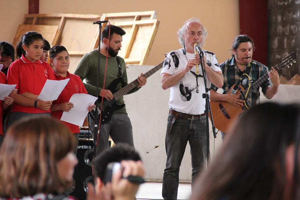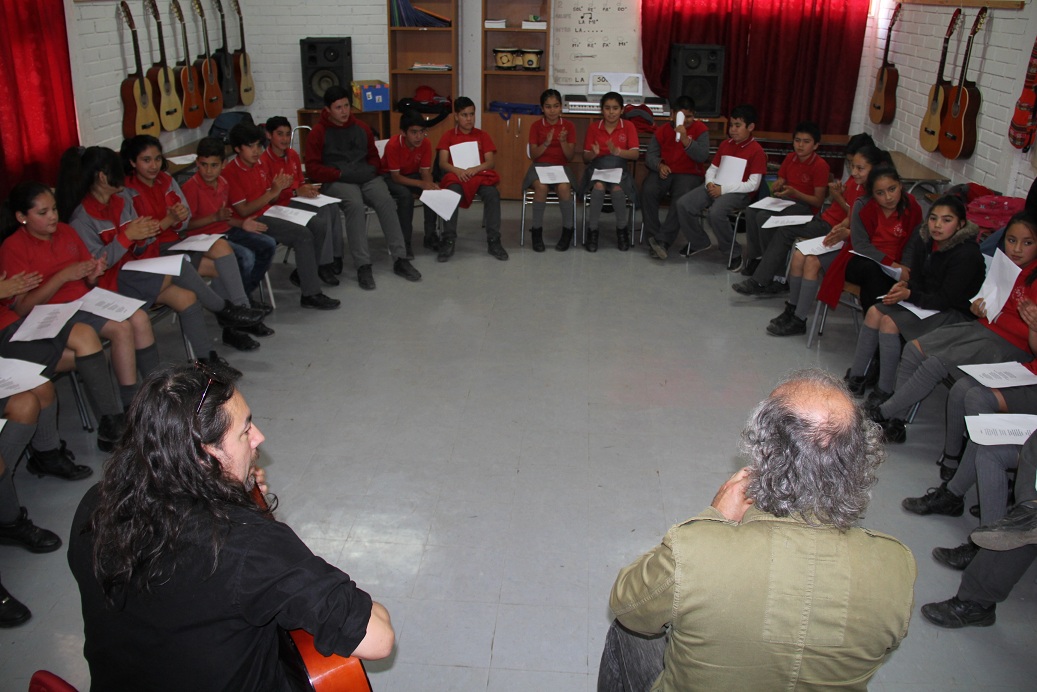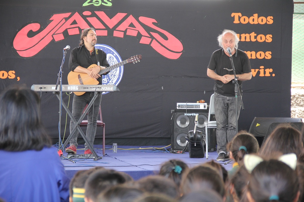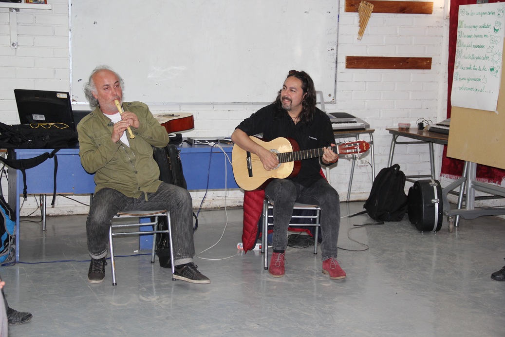 Fueron 48 horas apasionantes para Francisco Bosco y Alan Reale. Los músicos de Los Jaivas se sumaron activamente al Plan de Apreciación de la Música Nacional y participaron con entusiasmo de un interesante recorrido por escuelas de Atacama, en donde tocaron en vivo temas emblemáticos de la agrupación y pudieron compartir anécdotas, experiencias y técnicas con jóvenes talentos de la música local.