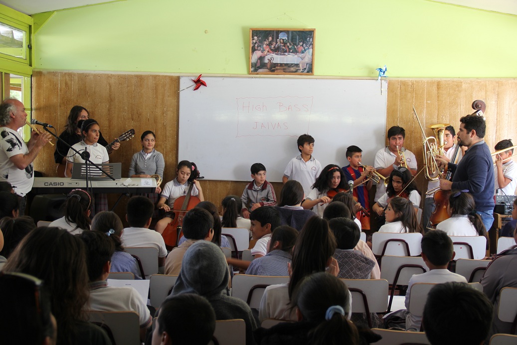 San Félix también fue testigo del trabajo en conjunto entre Los Jaivas y los estudiantes de su escuela, ya que tras una clase magistral y ensayos pudieron presentarse ante la comunidad con un acotado repertorio que despertó la alegría de los presentes. Para cerrar la aventura por el norte, Bosco y Alane se reencontraron con estudiantes de la escuela de El Tránsito, con quienes durante el verano habían participado de un concierto apoyado por el CRCA. Esta vez interpretaron “Todos Juntos” y la comunidad educativa en pleno disfrutó de una actividad en la que también se reflexionó sobre el rol del grupo en la historia de la música chilena.