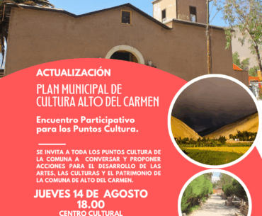 La Seremi de las Culturas, las Artes y el Patrimonio de Atacama, a través de su programa Red Cultura, en alianza con la Ilustre Municipalidad de Alto del Carmen, iniciaron el proceso de actualización del Plan Municipal de Cultura, herramienta clave para orientar el desarrollo cultural local durante los próximos años.