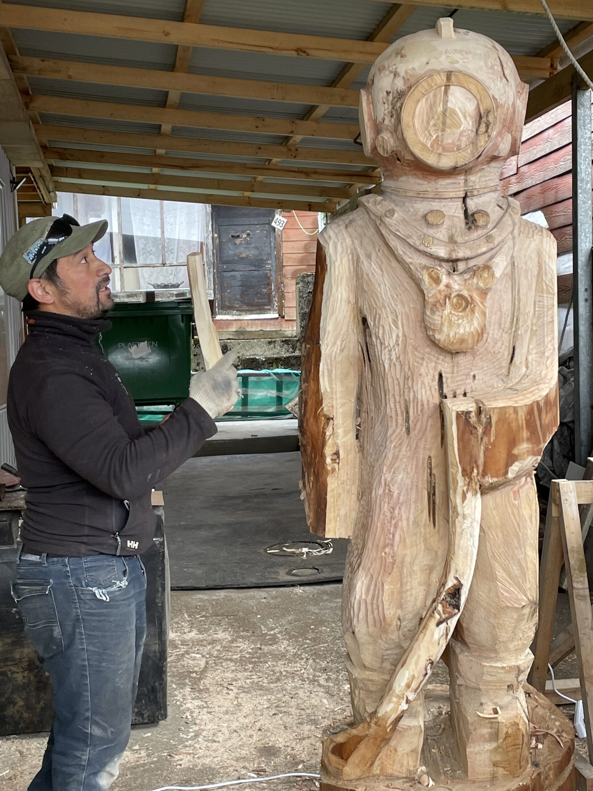 La Corporación Cultural Arte y Vida de Coelemu, Región de Ñuble, acompañó el proceso de elaboración de los planes de gestión de las comunas participantes. Además, el escultor tortelino Augusto Hernández cerró su microrresidencia artística con una pieza de madera de un buzo escafandra.