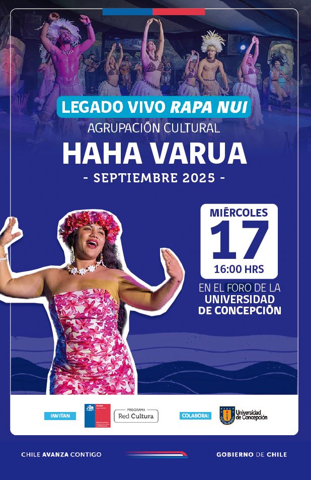 Para dar la bienvenida a las Fiestas Patrias, el próximo miércoles 17 de septiembre, a las 16:00 horas, el Foro de la Universidad de Concepción recibirá a la agrupación cultural Haha Varua, referente de la tradición ancestral de Rapa Nui, que cerrará en la capital regional su recorrido por siete comunas del Biobío. La presentación estará precedida por la Orquesta Infantil del Centro de Creación de Concepción, con un repertorio de música chilena.