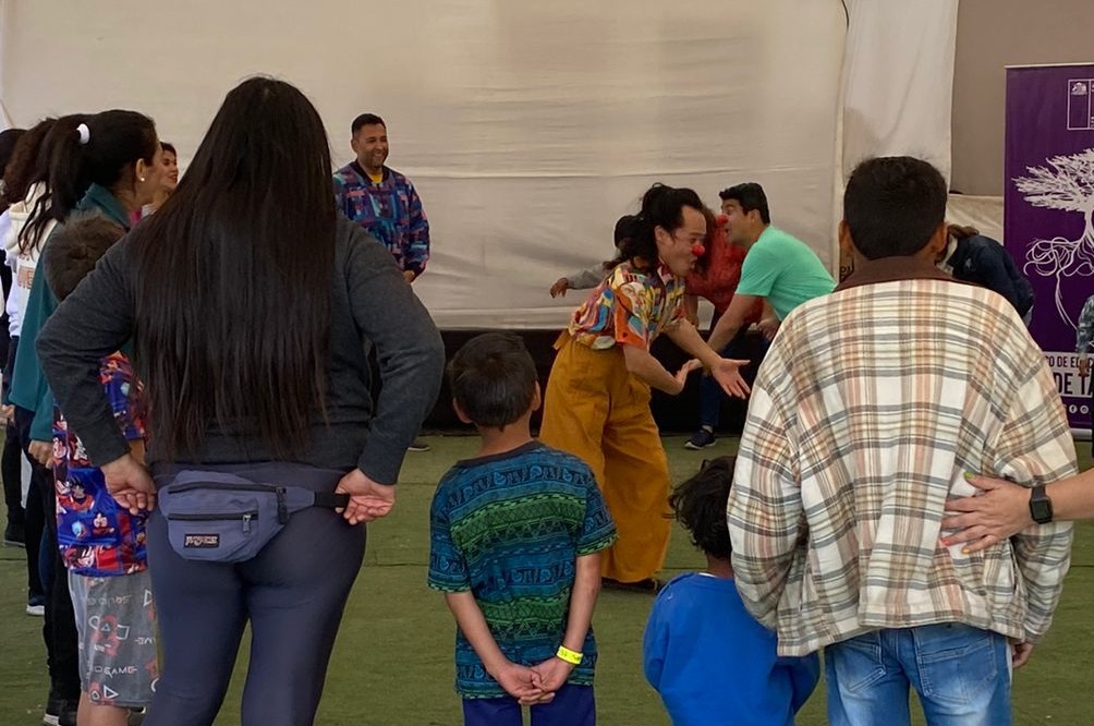 Representantes de la ONG Payasos sin Fronteras, provenientes de Brasil, junto a voluntarios y voluntarias chilenos/as que participaron de la conferencia: “Sentidos de la Risa” y del workshop; ¿Jugamos? compartieron y rieron junto a los niños y niñas del albergue Lobito, ubicado en Iquique durante la mañana del viernes 30 de septiembre. El objetivo de esta actividad fue brindar contención y un momento de alegría a las familias que en este momento forman parte del albergue transitorio.