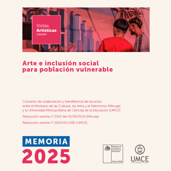 La ejecución del programa Visitas Artísticas Fondart para el período 2026 responde a la firma de un convenio de colaboración con transferencia de recursos, establecido entre el Ministerio de las Culturas, las Artes y el Patrimonio (Mincap) y la Universidad Metropolitana de Ciencias de la Educación (UMCE), mediante resolución exenta n° 3370 de fecha 25 de noviembre del 2025.